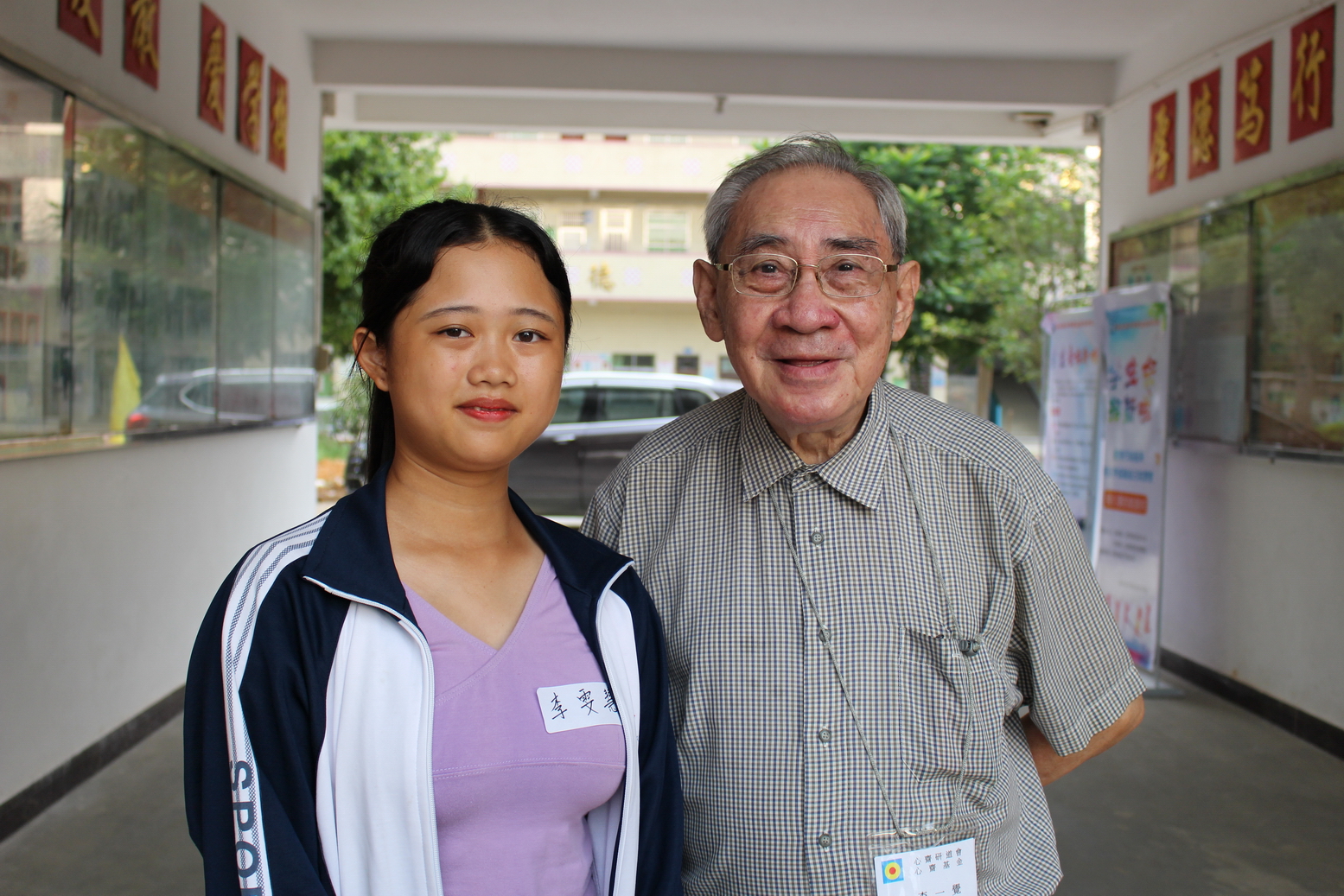 心齋服務人員得悉學生曾金?之個案時,隨即表示關心和提供協助, 金?才放下不安心情, 展現笑容。