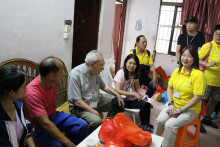 在李一覺會長帶領下, 心齋服務人員及熱心人士家訪了受資助學生李雯慧和李會導。