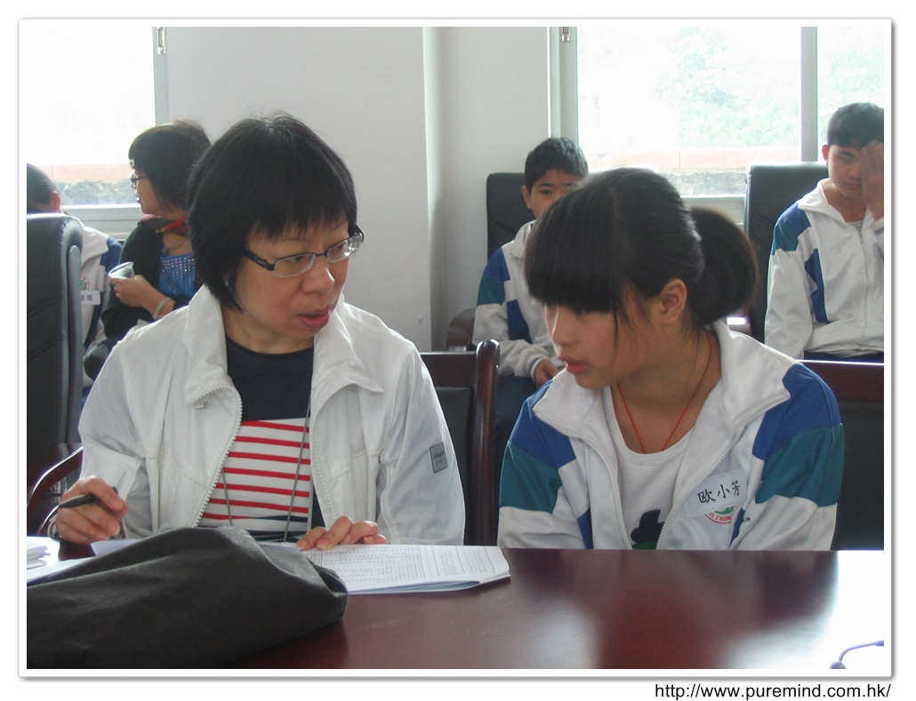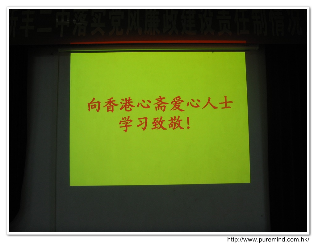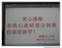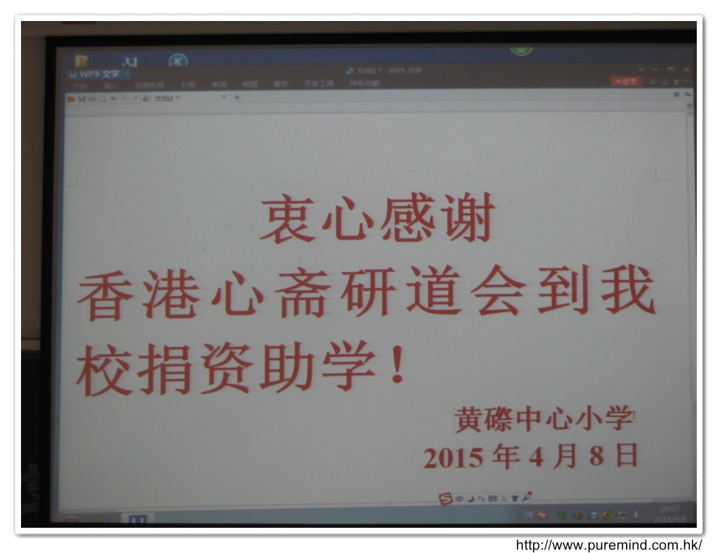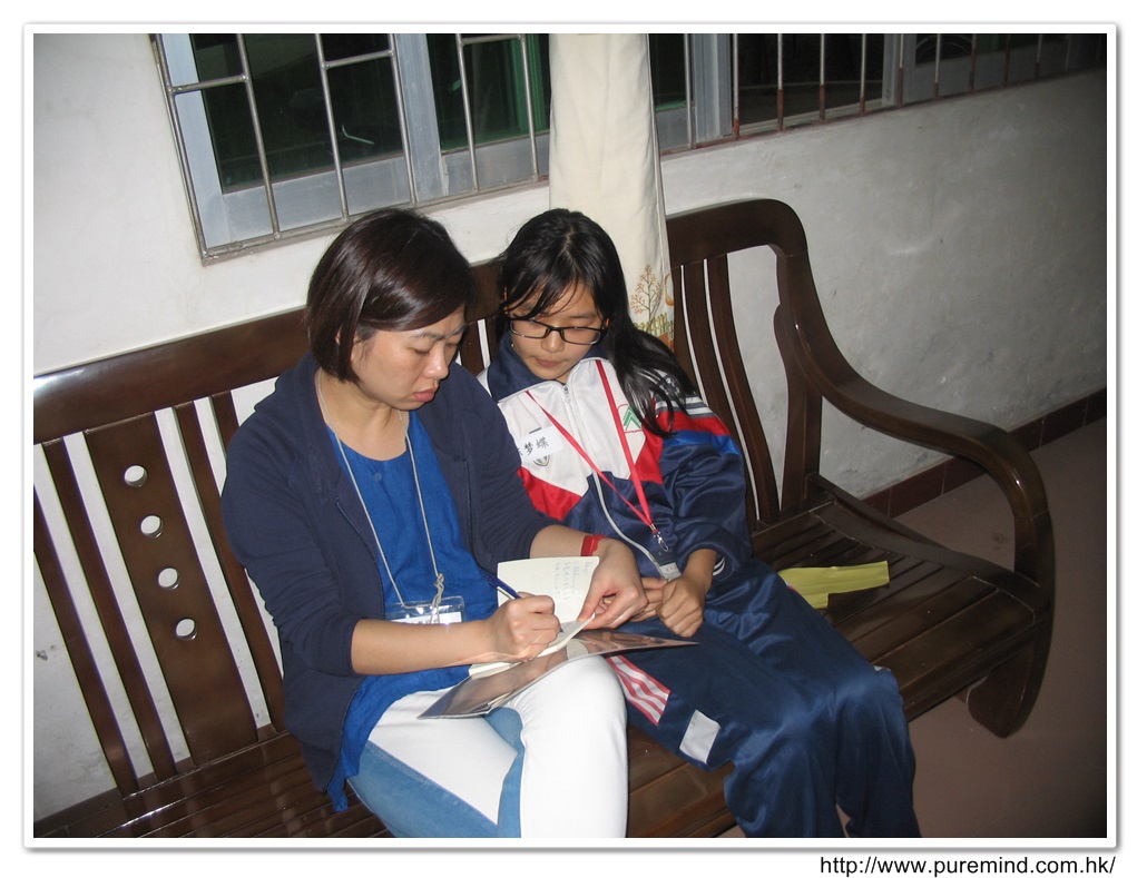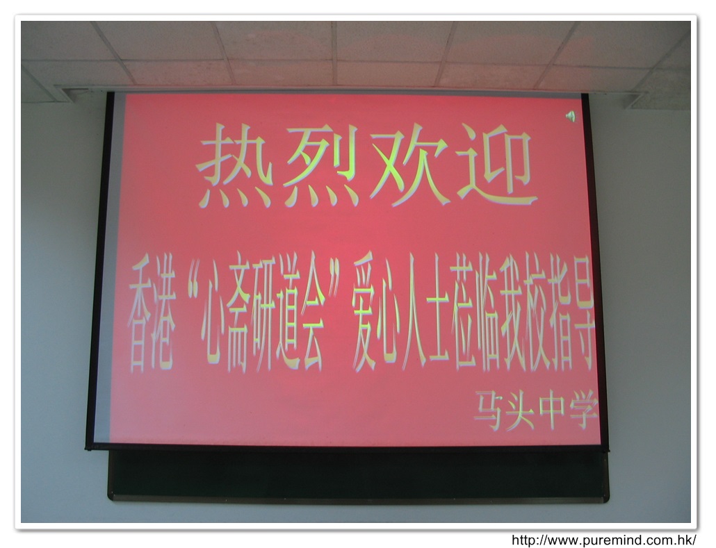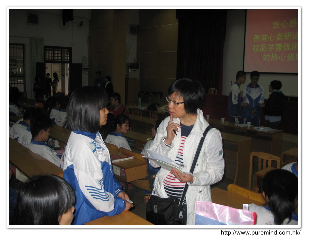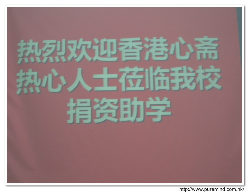 歡迎牌 - 為心齋的到訪準備及梅婉蓉總幹事正在為學生們講解助學事宜。