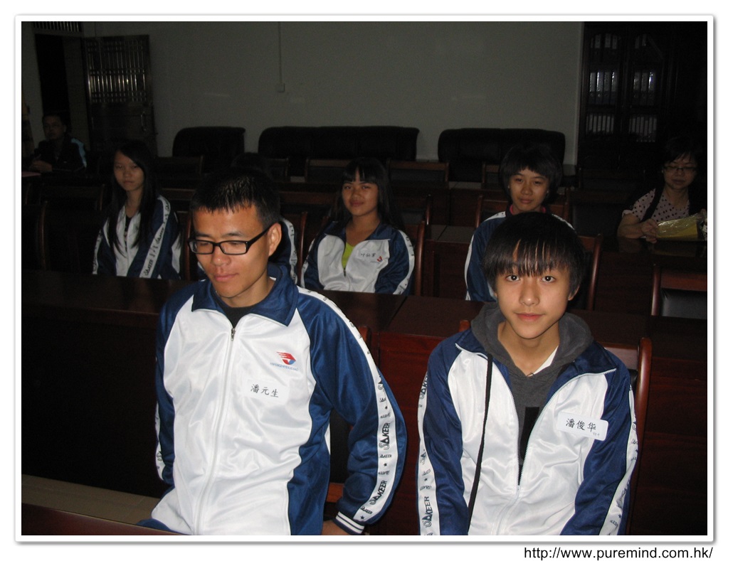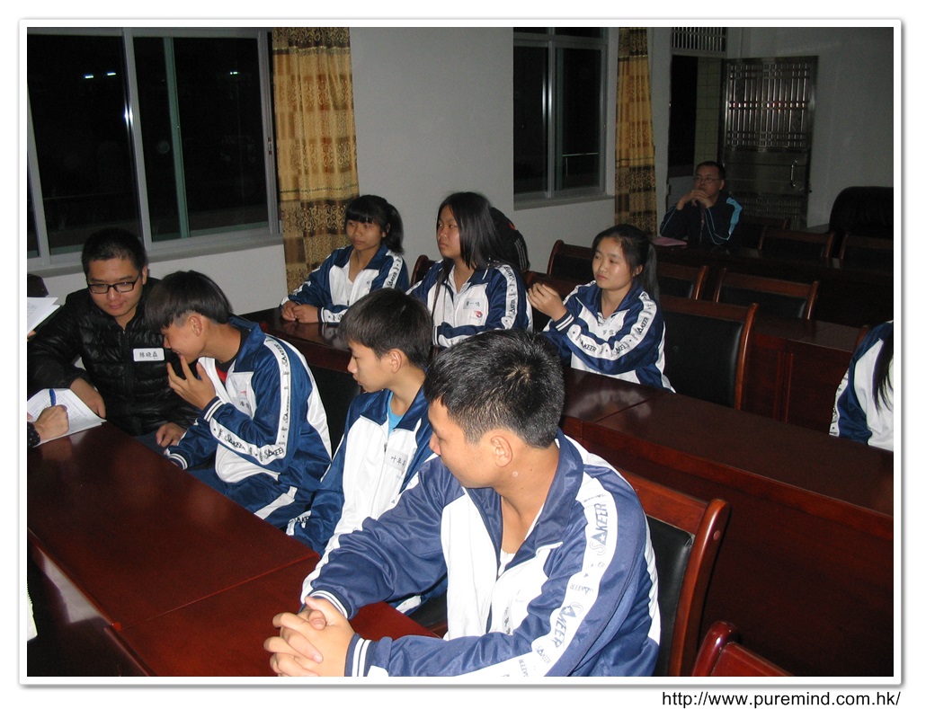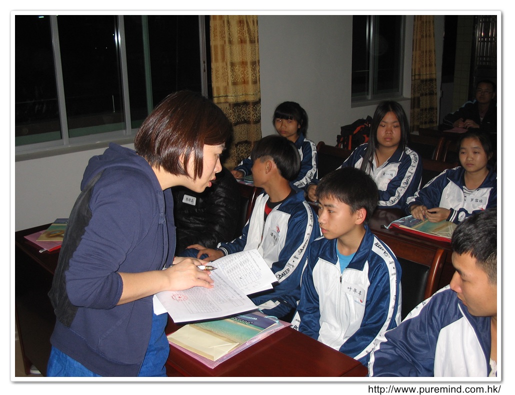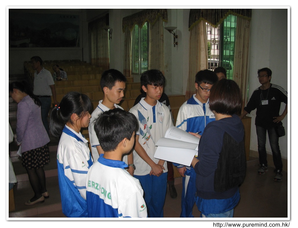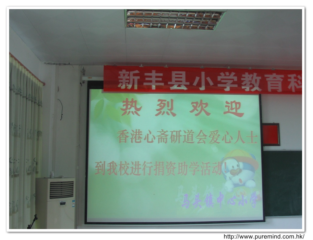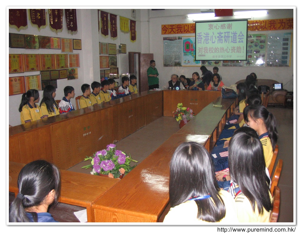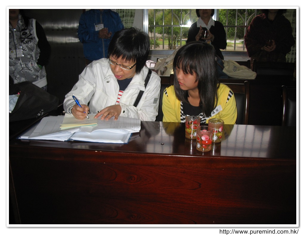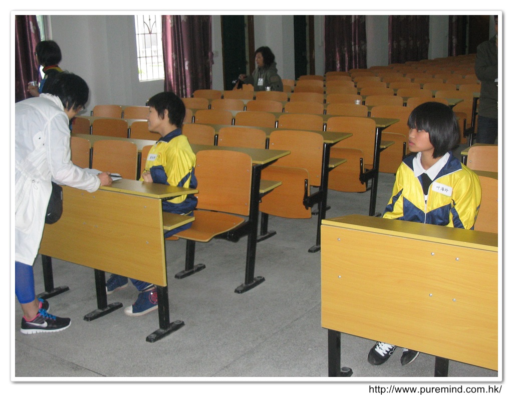 歡迎牌 - 為心齋的到訪準備及梅婉蓉總幹事正在為學生們講解助學事宜。