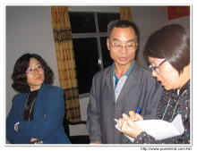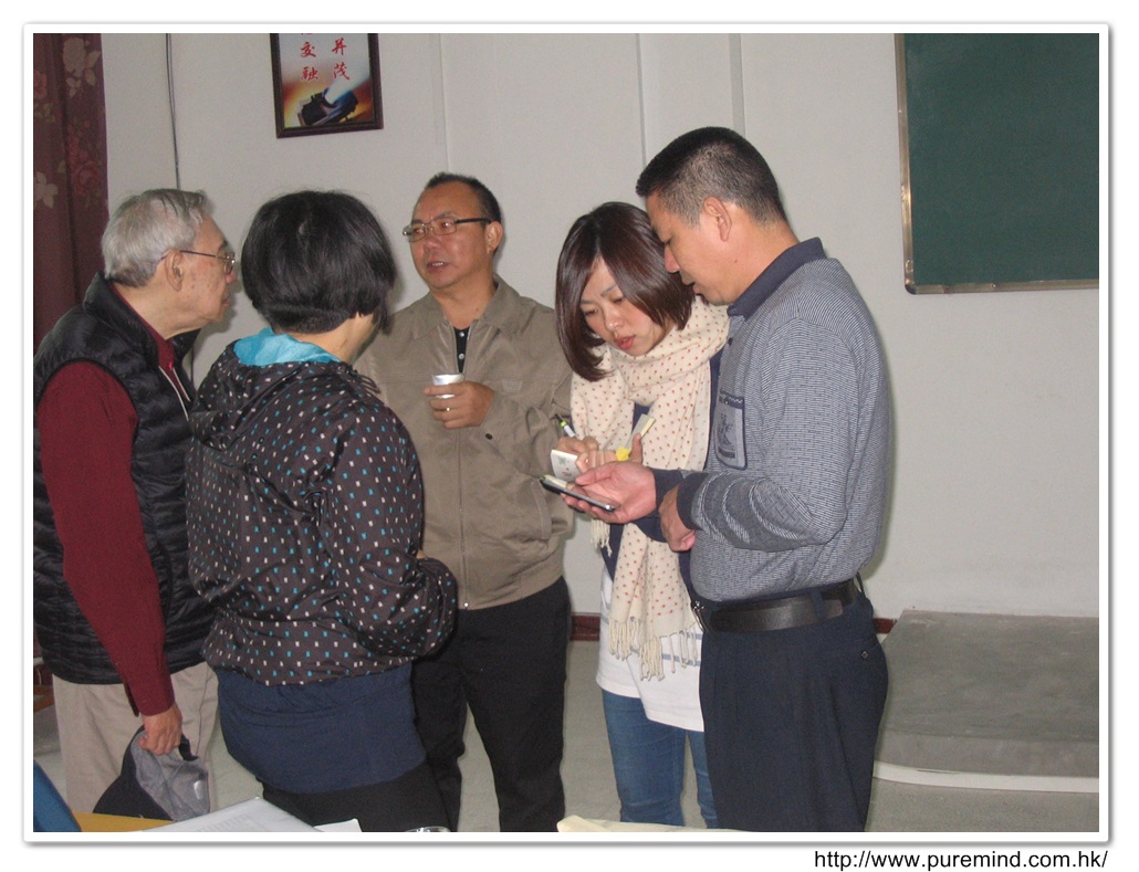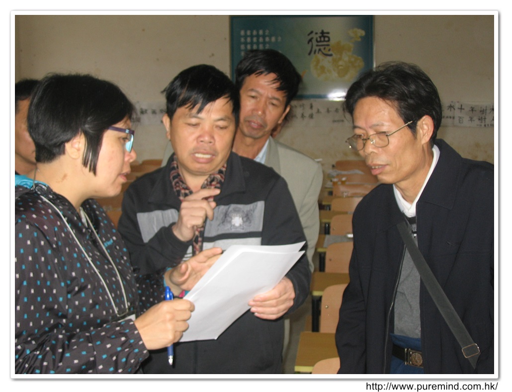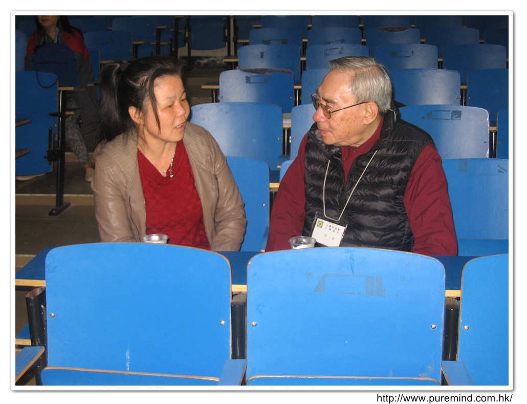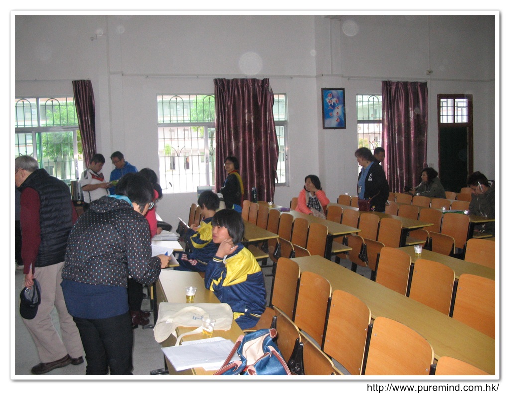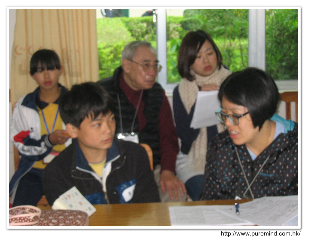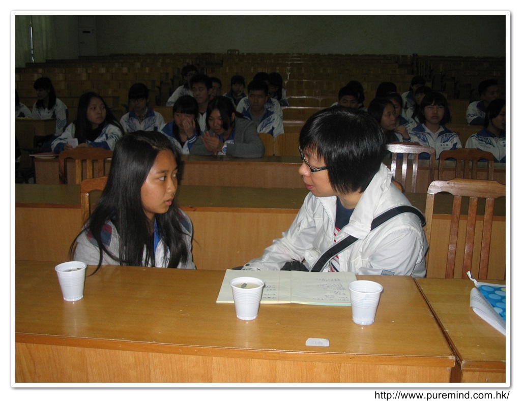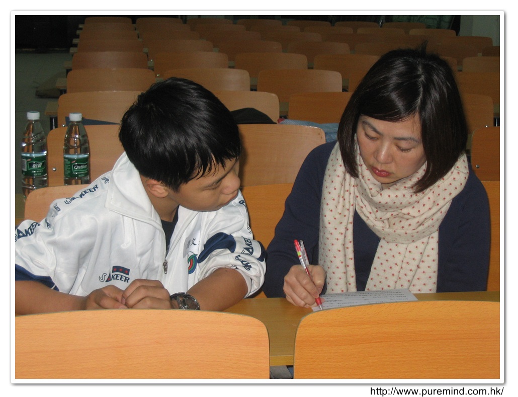 歡迎牌 - 為心齋的到訪準備及梅婉蓉總幹事正在為學生們講解助學事宜。