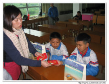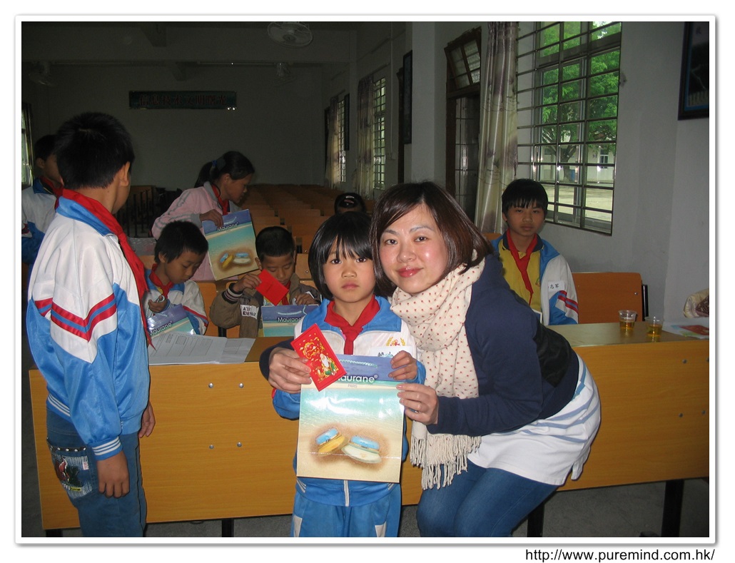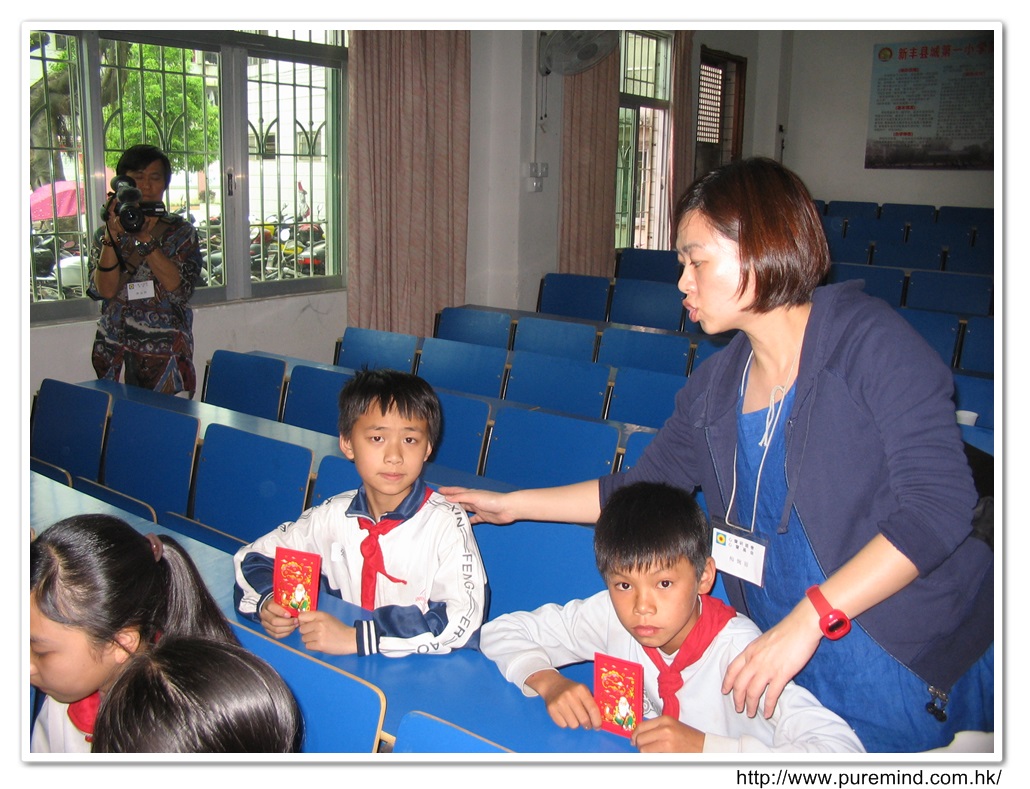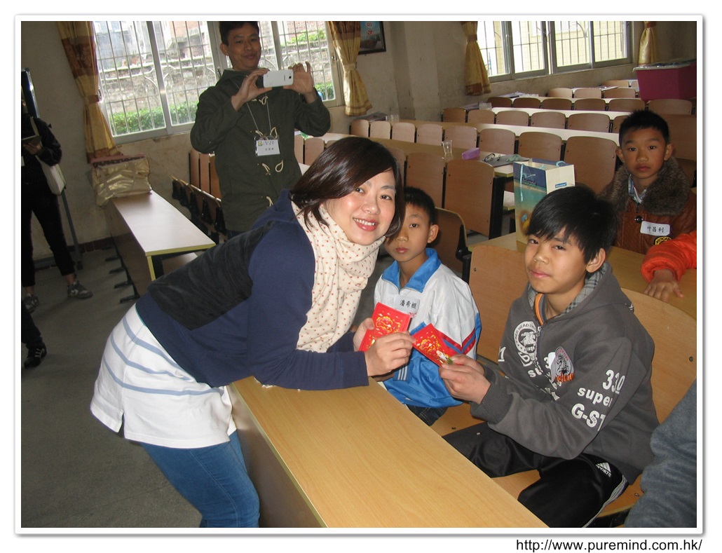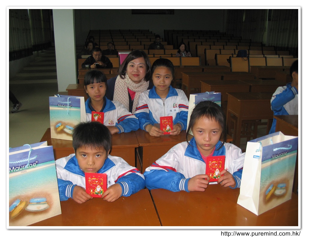 學生們收到禮物及紅包後時攝。