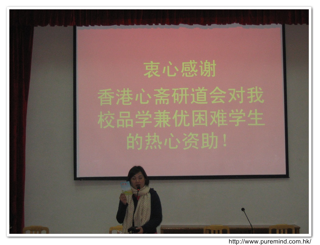 心齋國內負責人馮杏玲小姐也為學生們獻唱一曲以作鼓勵。