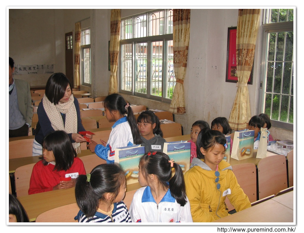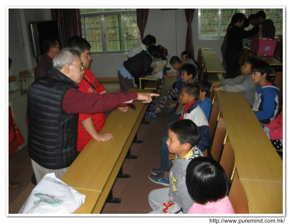 派發禮物予各受資助學生時攝。