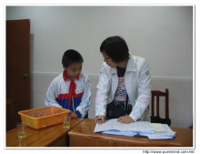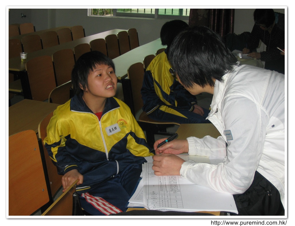 服務人員向老師及家長了解學生病況時攝。