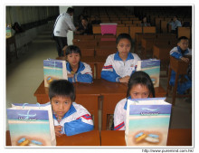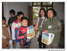 學生收到禮物後攝。