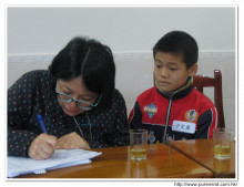 學生接受紅包時攝。