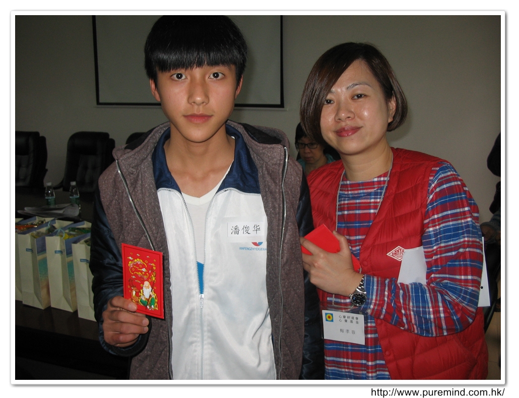 本基金服務人員代表張文忠伉儷派發紅包予受資助學生以示對受資助學生的心意。