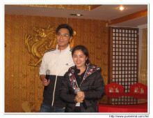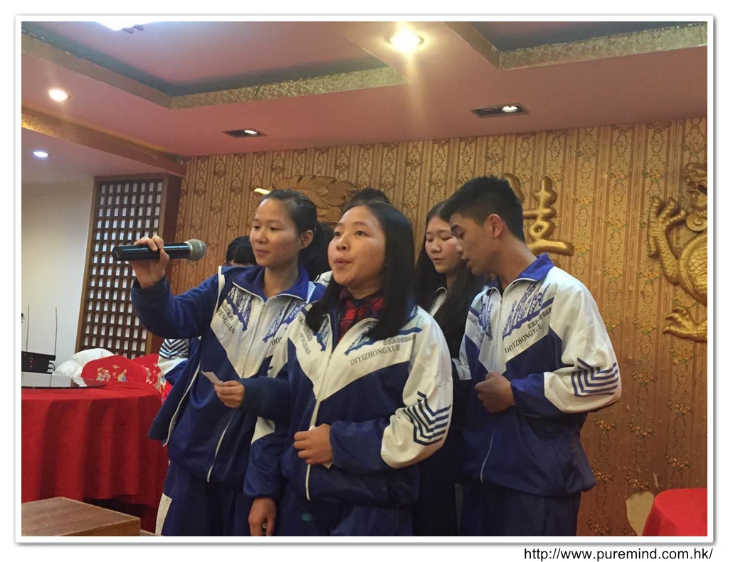 李一覺會長與本基金國內負責人馮杏玲女士合唱一曲,勸勉學生努力不要放棄。
