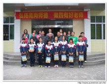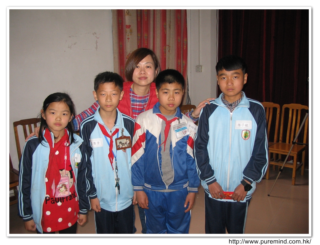 本基金國內負責人馮杏玲女士、羅毅靈先生及龍唯小姐與回龍鎮受資助小學生留影。
