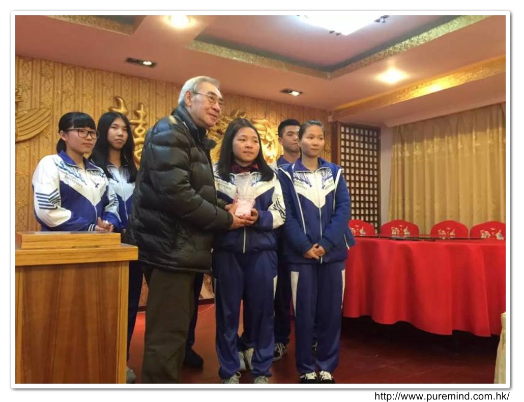 本基金總幹事梅孝容將資助金交予梁燕林校長以作為資助黃礤小學甘露行動獎勵金之用。