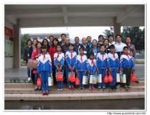 探訪縣城三小受資助學生並與本基金服務人員及熱心人士合照。