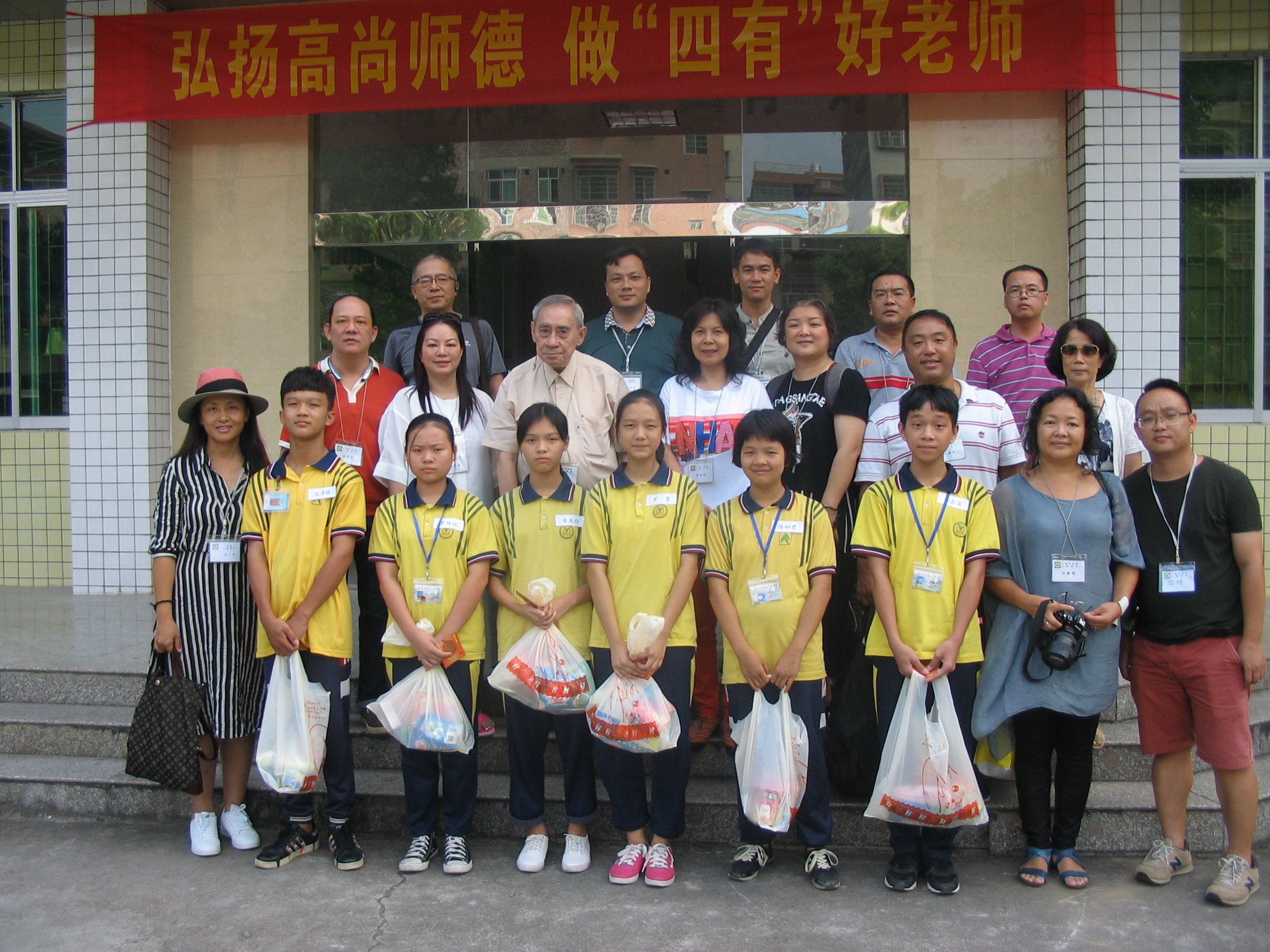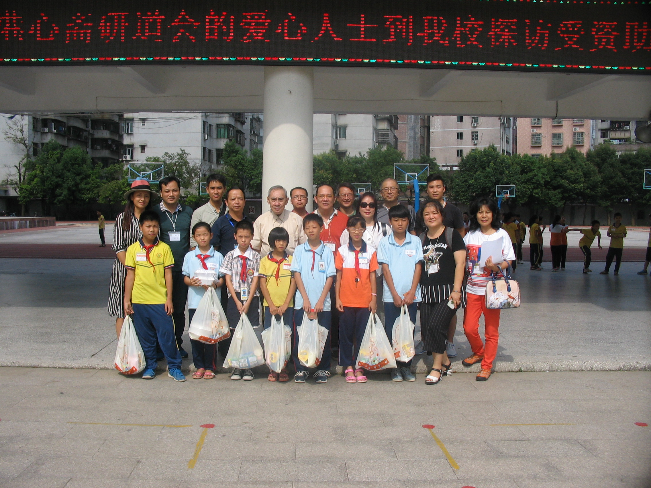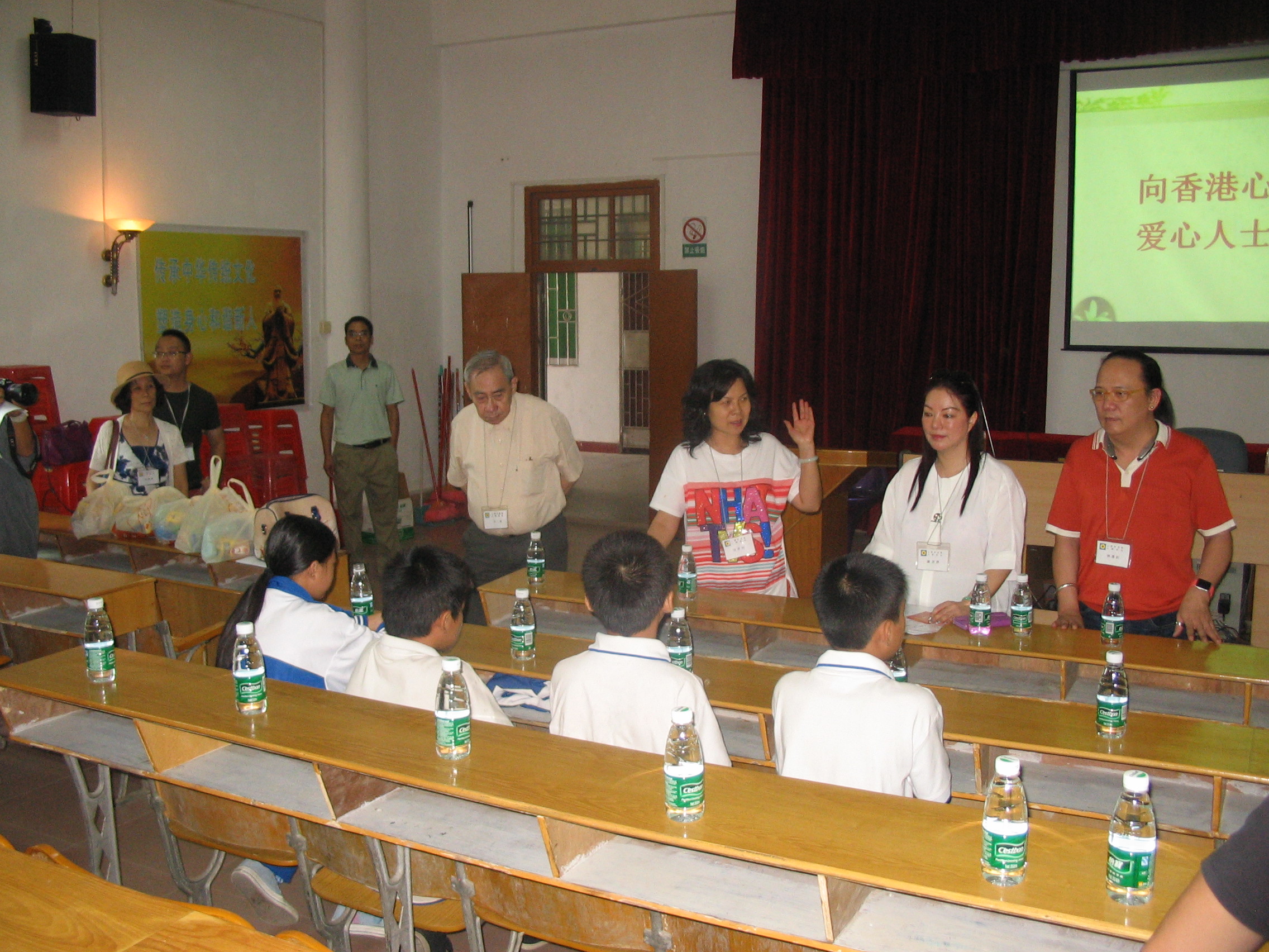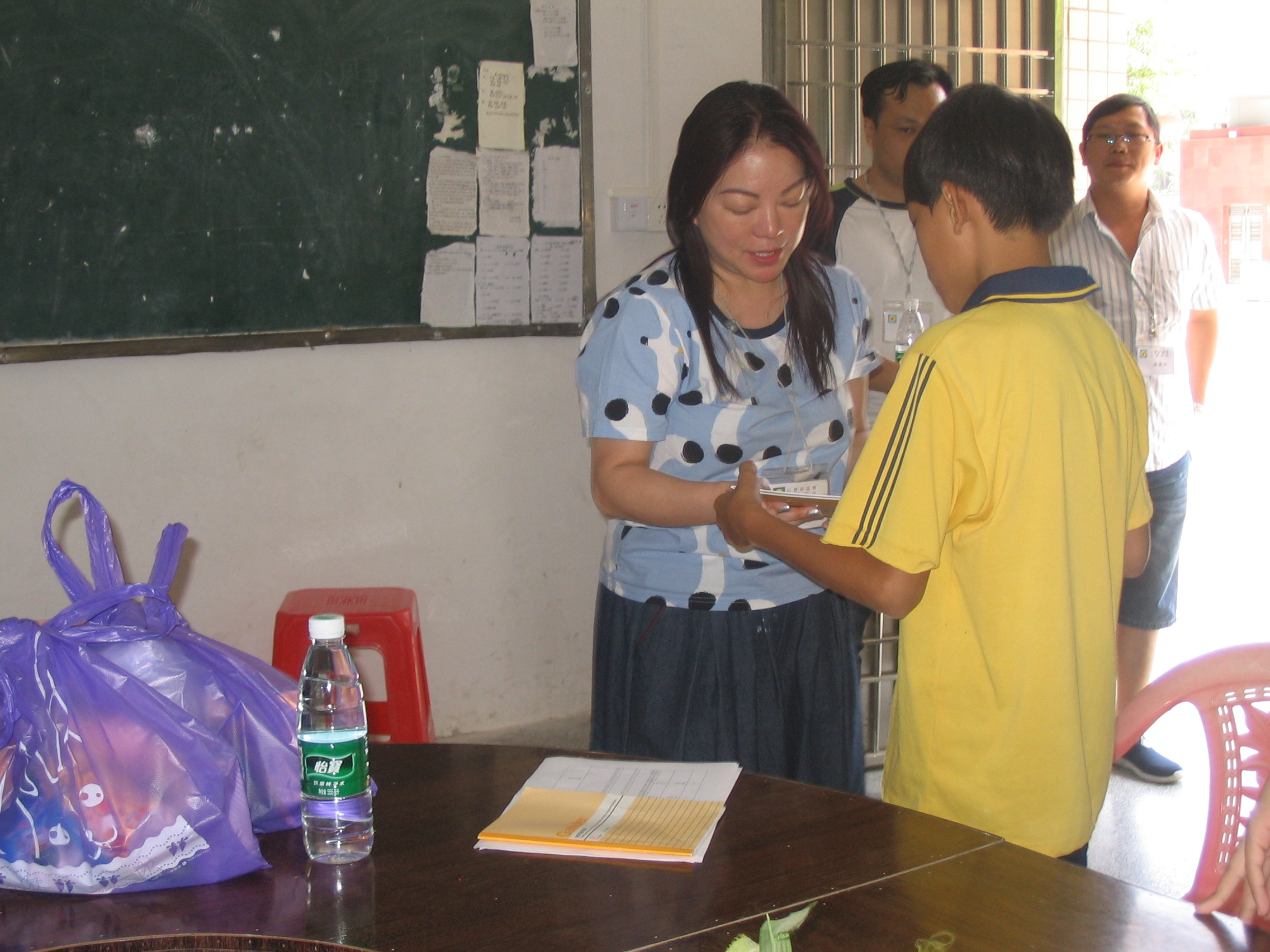 縣城一小、縣城三小及新豐縣實驗小學的受資助學生齊集於縣城三小與服務人員及熱心人士見面和合照。受資助學生收到禮物時表現興奮。