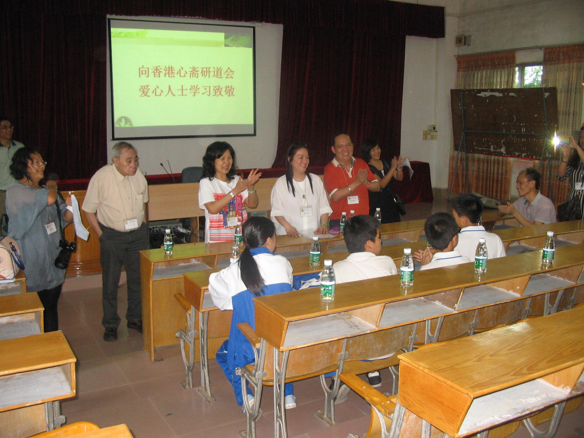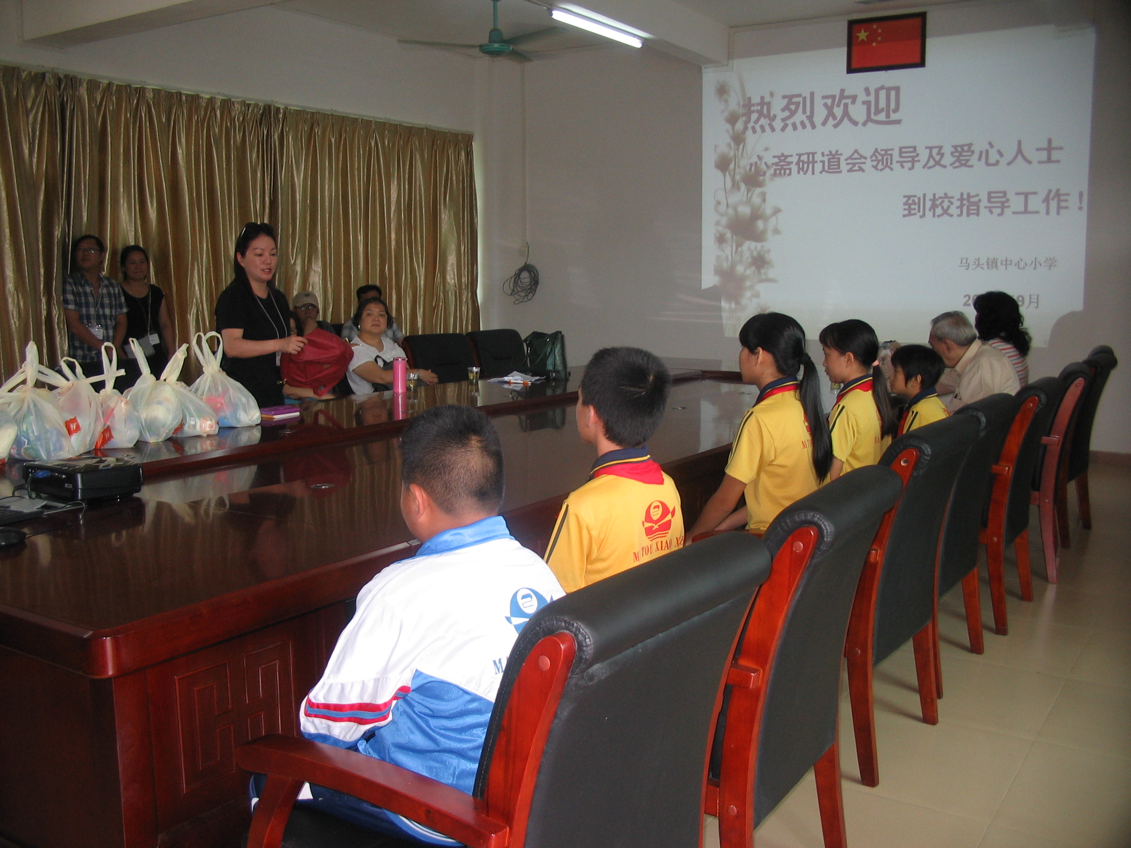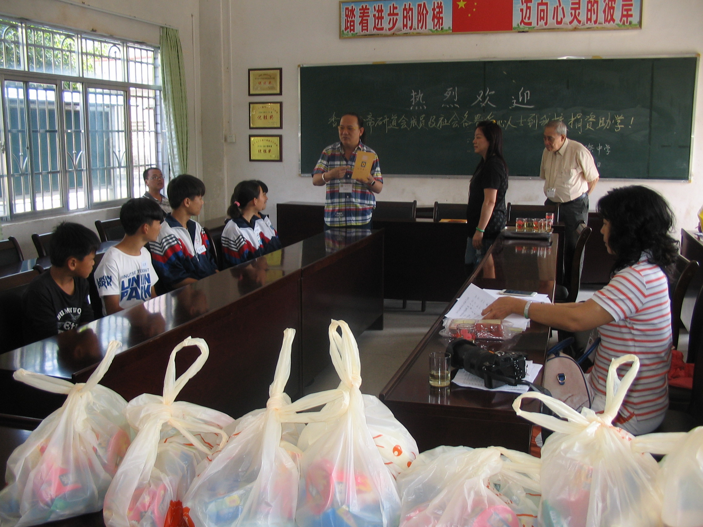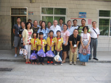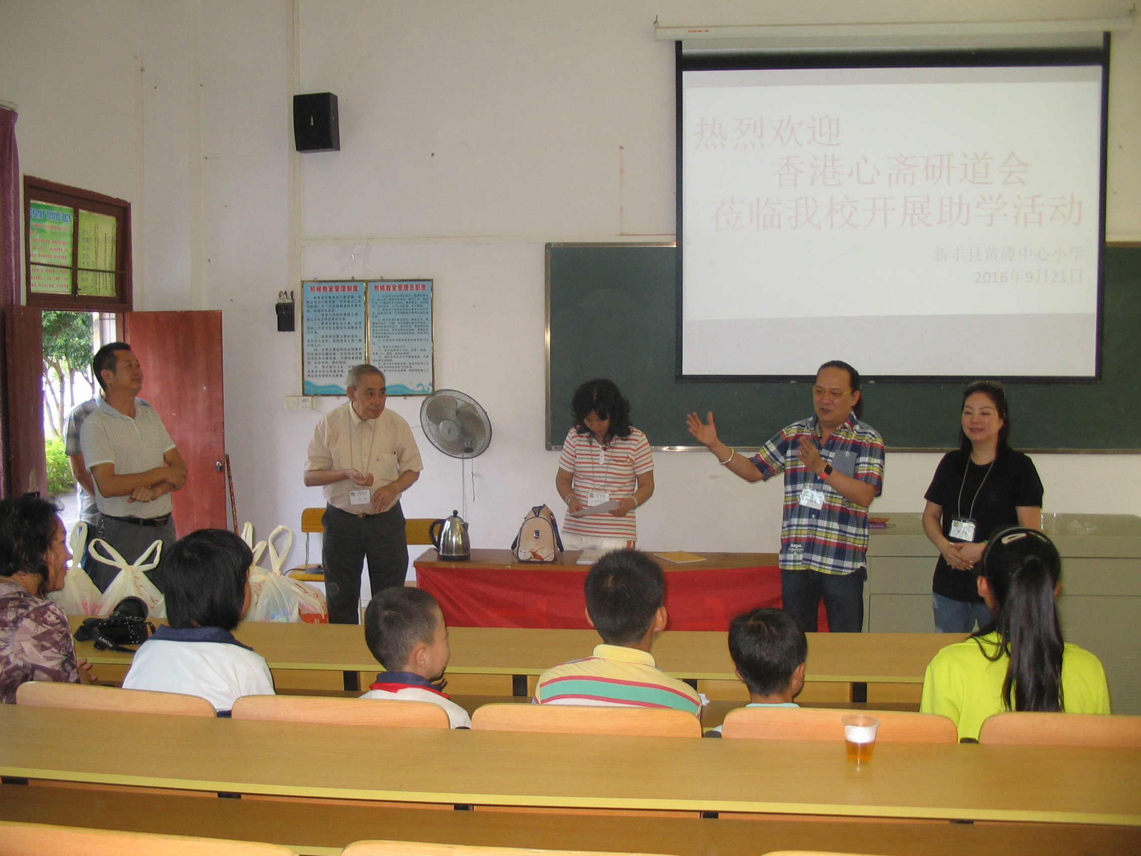 縣城一小、縣城三小及新豐縣實驗小學的受資助學生齊集於縣城三小與服務人員及熱心人士見面和合照。受資助學生收到禮物時表現興奮。
