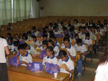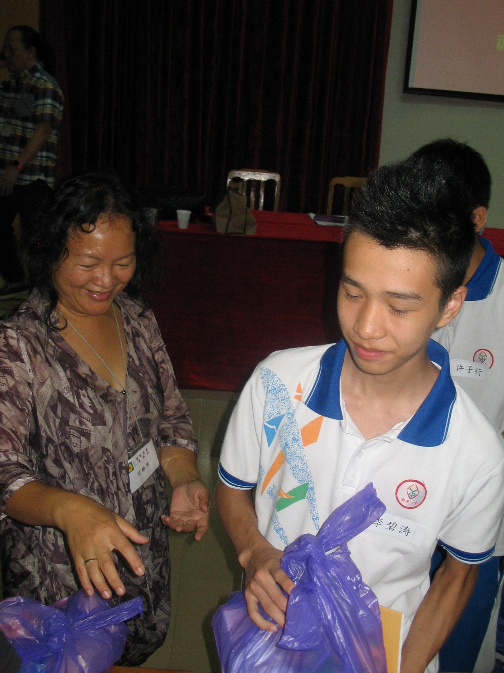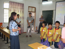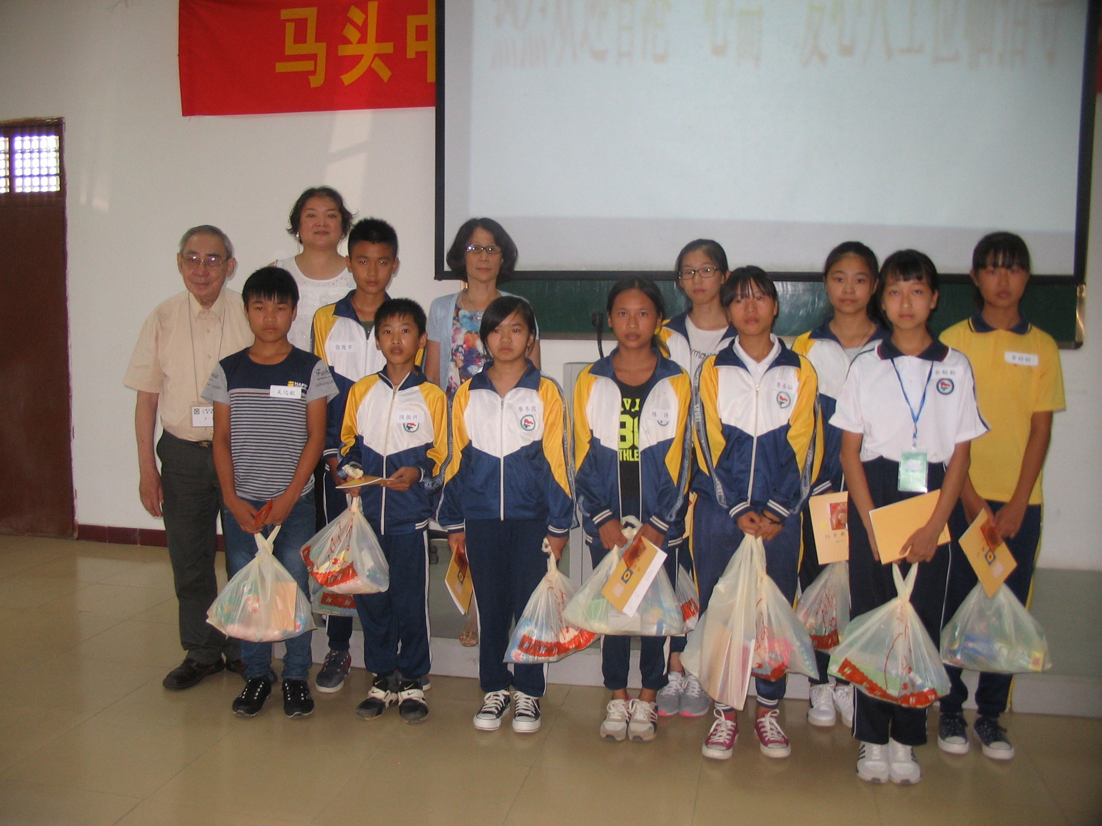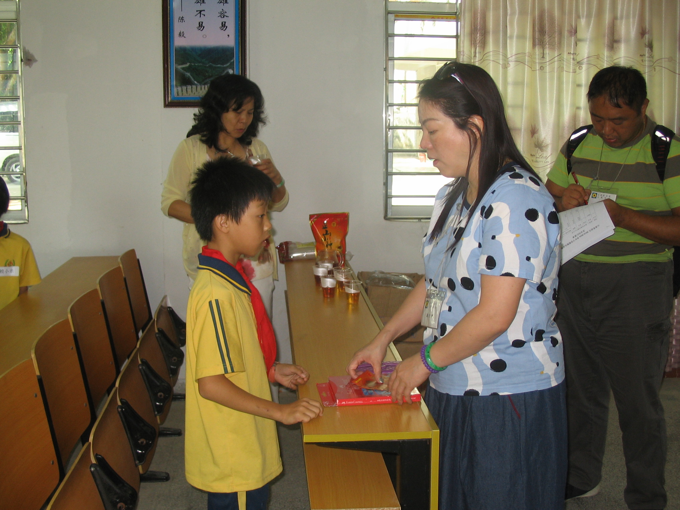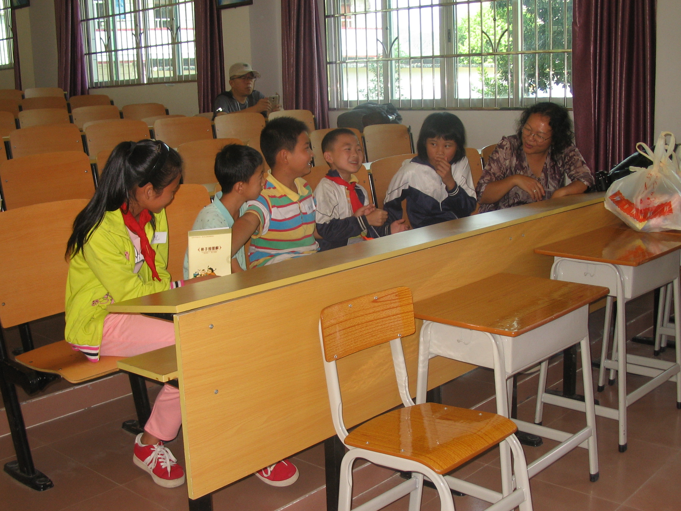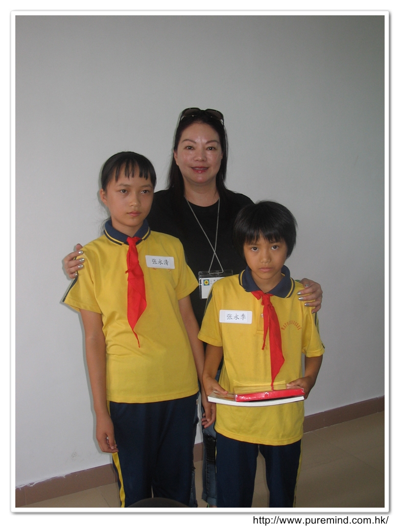 縣城一小、縣城三小及新豐縣實驗小學的受資助學生齊集於縣城三小與服務人員及熱心人士見面和合照。受資助學生收到禮物時表現興奮。