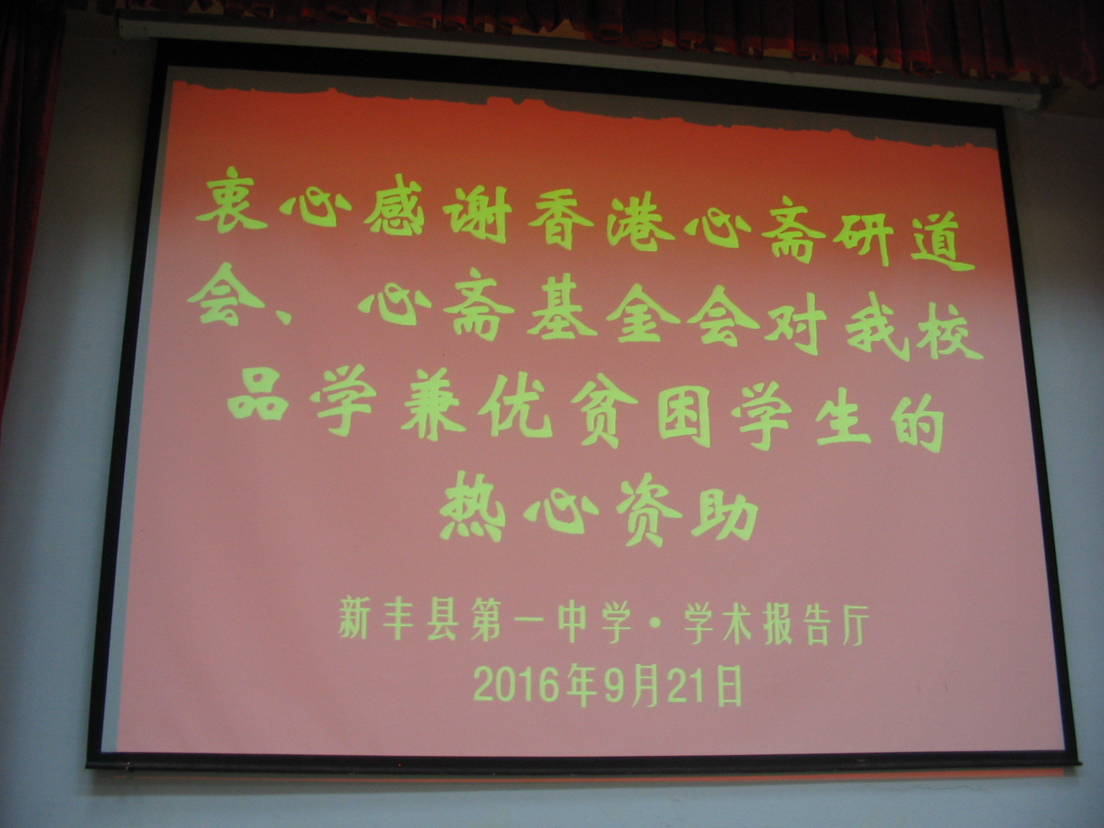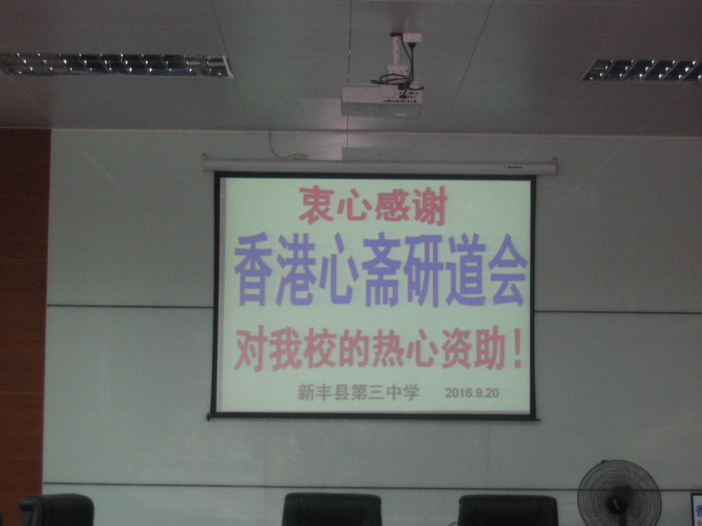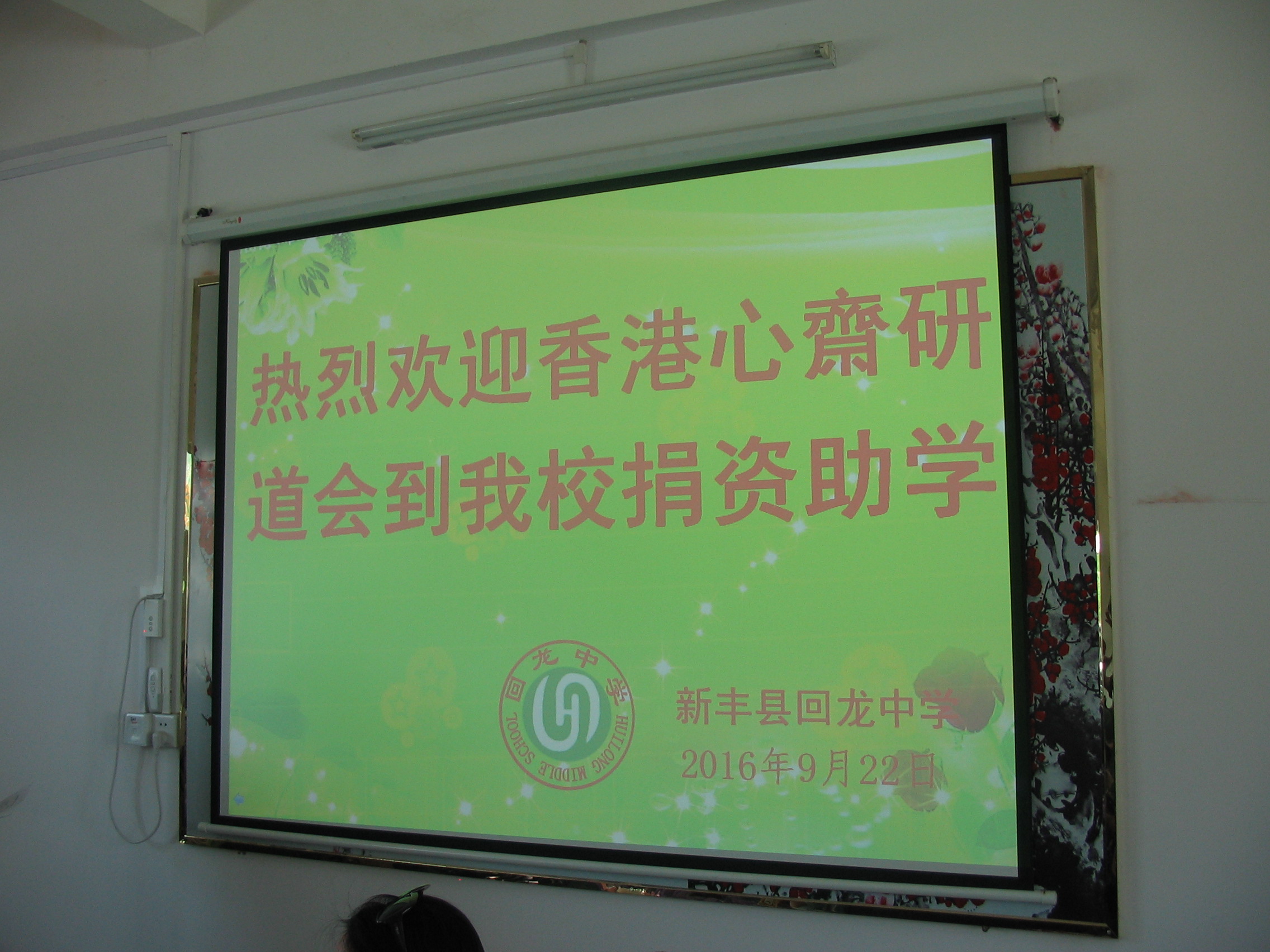 新豐三中準備了歡迎標語。服務人員及熱心人士了解受資助學生的近況。