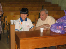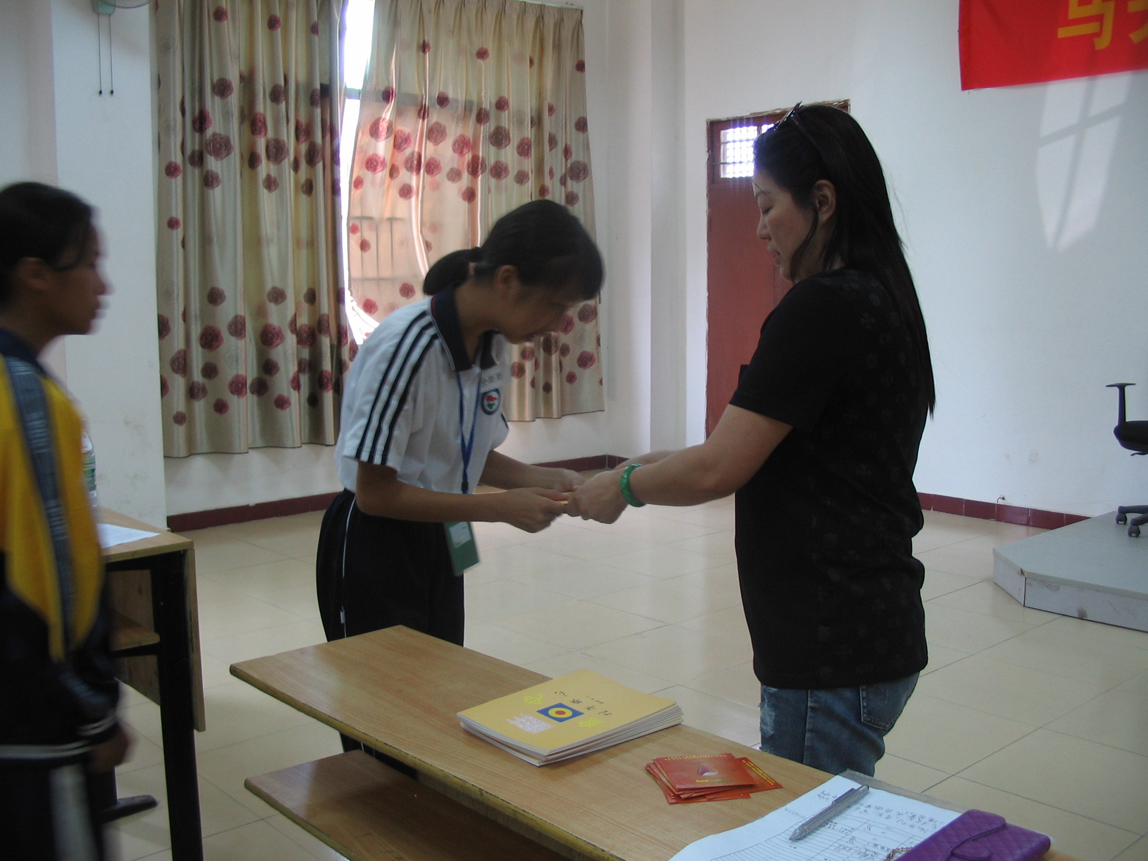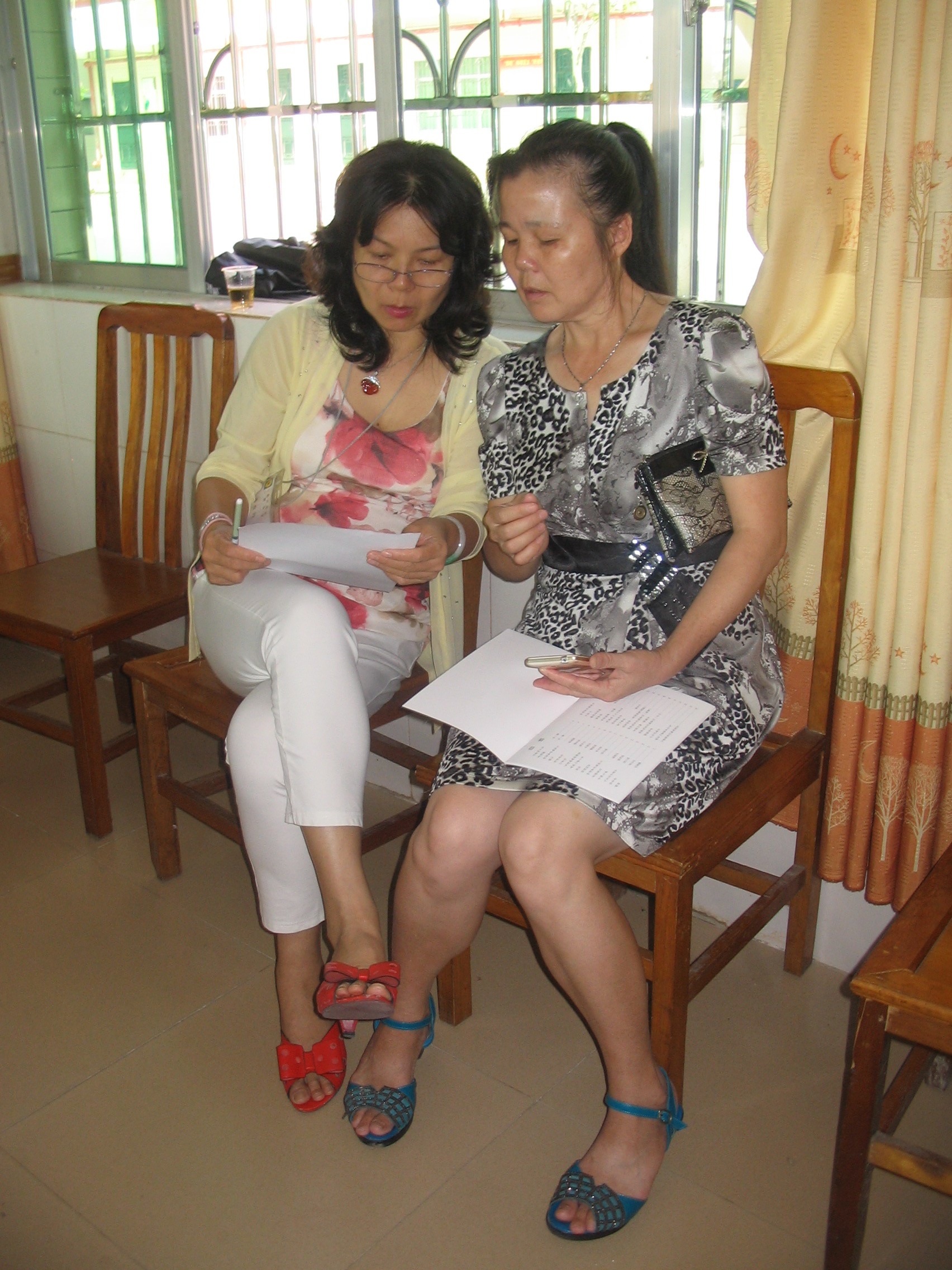 國內負責人馮杏玲向羅小紅校長查詢受資助學生的學習情況。