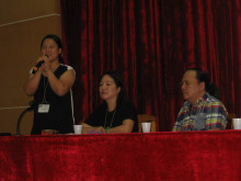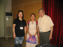 李一覺會長、慈善大使羅君慧與受資助學生黃麗嬋見面時攝。